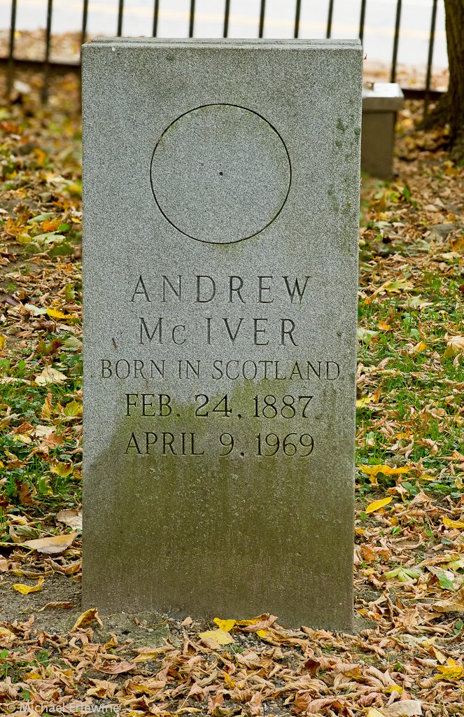 [The tombstone for Andrew Gunn McIver is in the Forest Hil Cemetary along Geddes Road in Ann Arbor, Michigan.]